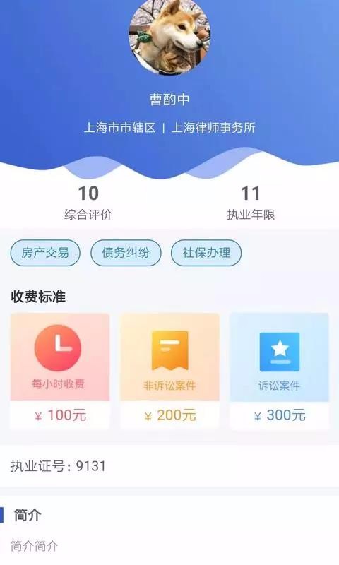 4、提供的律师简介非常的详细,方便用户及时选择更合适的律师服务;