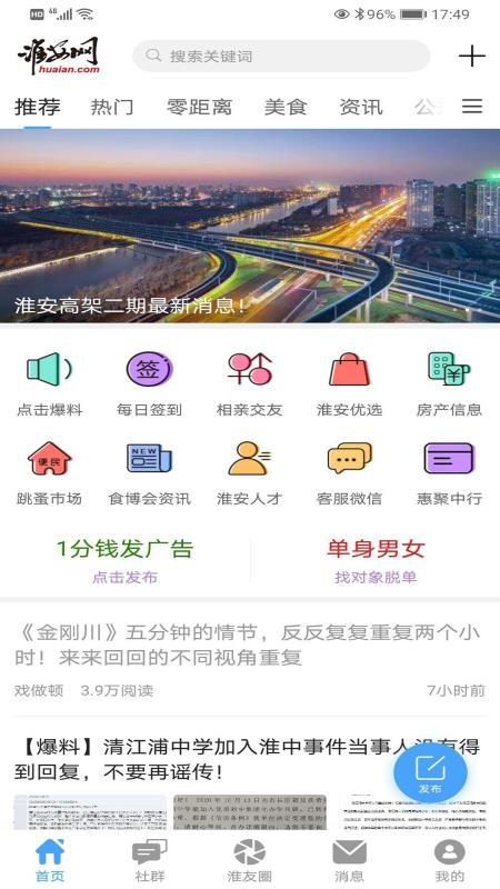 2、查看首页中显示的各种爆料和本地趣闻,了解淮安本地最新消息
