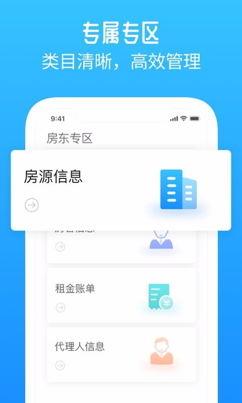 2、为房东提供了专属专区,类目清晰,实现高效管理房源、账单、代理人等;