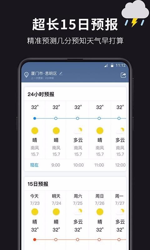 1、实时的天气预报,权威精准的为你提供天气数据,还自动根据天气变化展示相应的插图;