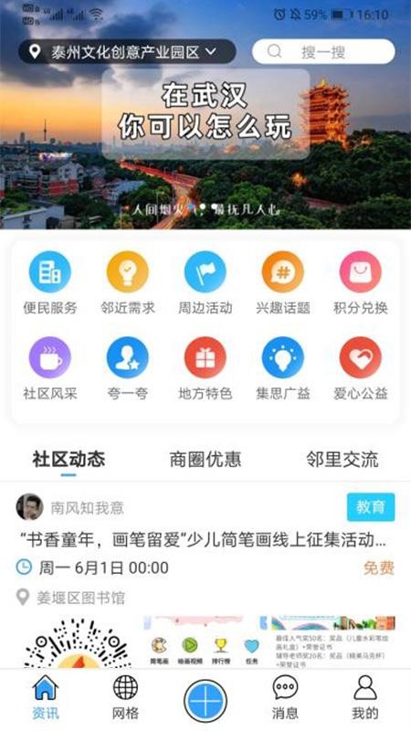 2、查看首页中显示的各种社区动态信息,了解各种活动详情和举办时间