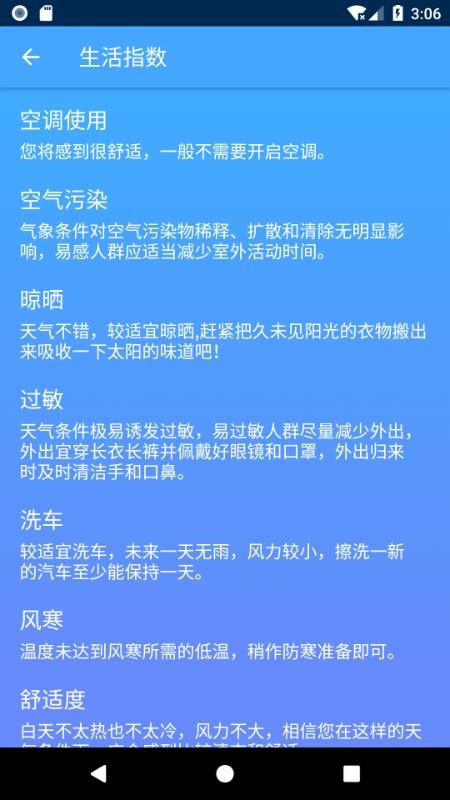 4、所有的生活指数全部展示在平台里,用户能够更好的进行使用,非常的发布;