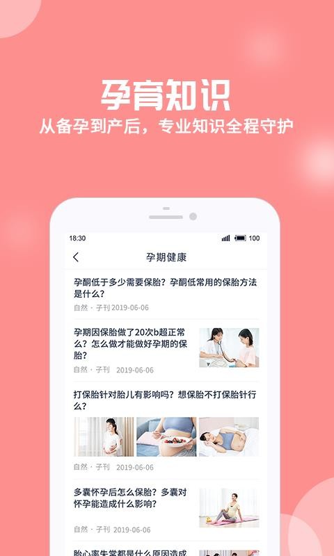 1、提供丰富的孕育知识,从备孕到产后都有专业的知识全程陪护;