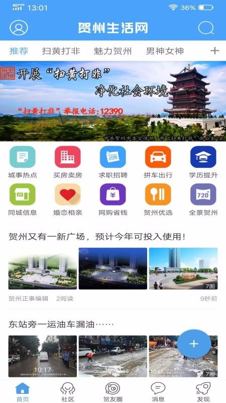 贺州生活网是为贺州地区的用户提供的生活社交应用,提供了各种信息专区,比如有城事热点、买房卖房、求职招聘、拼车出行、学历提升、同城信息、婚恋相亲等;提供了互动的社区,当地的用户可以在该页面中发布相应的信息进行分享,比如爆料、商业信息、提问、照片等;拥有专门的贺友圈,可以在该圈子中发布生活动态并进行交友,同时还可以发现附近的好友,提供了相应的达人榜,供你查看上榜的热门用户;提供了便民查询平台,包括全景贺州、贺州天气、公交查询、快递查询等方面的信息。