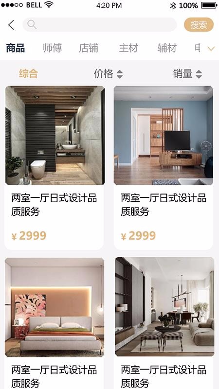 1、搜索查找设计服务,支持通过关键词找到自己喜欢的装修设计服务产品;