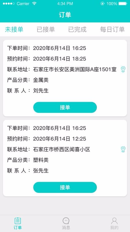 6、非常清晰的订单回收类别,订单不仅展示了相应的配送信息资料,还能看到回收的具体类别,能判断是否是重金属等;
