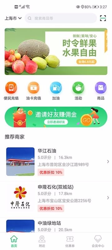 乐生惠是一款便民生活消费软件,群众可以在这里优惠充值、优惠充值油卡或优惠加油等,获得多种不同的优惠服务项目;首页会为用户推荐附近的热门商家列表,这些商家涵盖了附近的加油站,可以在开车的途中查看这些商家列表并挑选其中一家点击查看油价详情等信息后使用导航功能找到该商家;这里面还有丰富的商品中心,进入到商品专区中能看到其中各种丰富的商品资源,从中能挑选自己喜欢的商品在线购买,购买下单后的商品订单可以在会员中心我的订单栏中查看,想要查看物流也是从该栏中找到相应的订单查看物流信息。