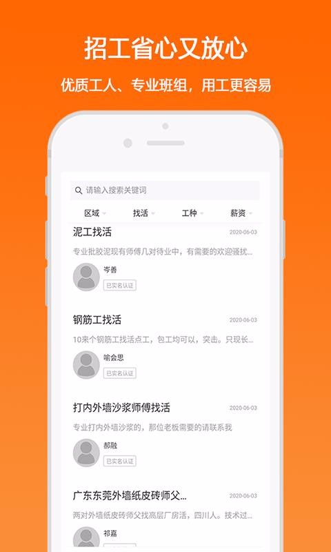 3、汇集了优质工人和专业班组,让企业用工更容易,省心放心的进行招工;