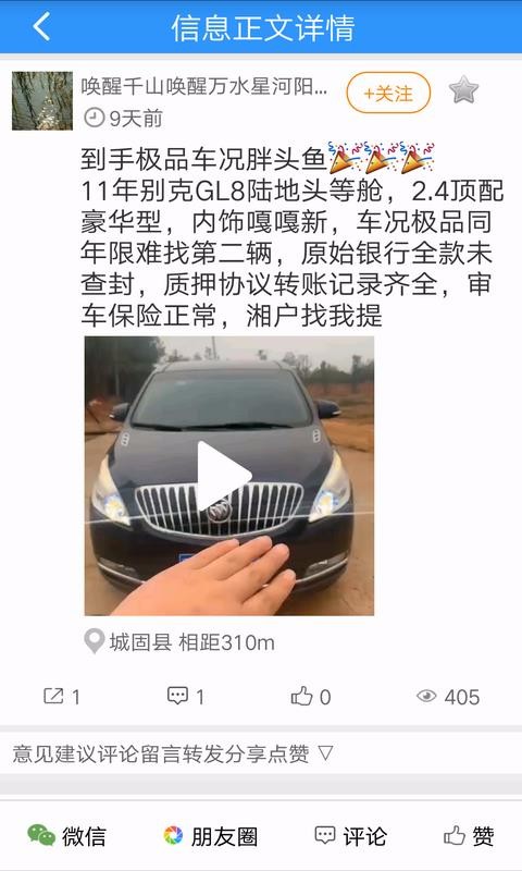 3、查看感兴趣的信息,直接参与评论,选择一键分享信息