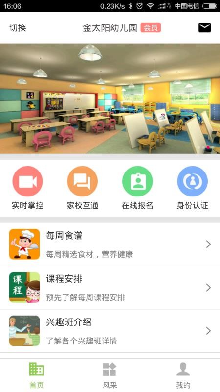 2、在首页中查看孩子的每周食谱和课程安排,了解各兴趣班信息