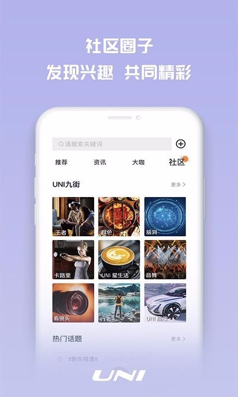 1、社区设计了不同的内容栏,不仅能看到丰富的九街栏图片内容,还能看到热门话题栏话题;