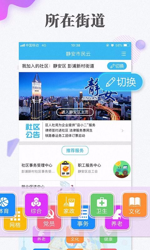 2、切换其他的社区,可以使用市民云中心的社区切换功能切换到其他社区;