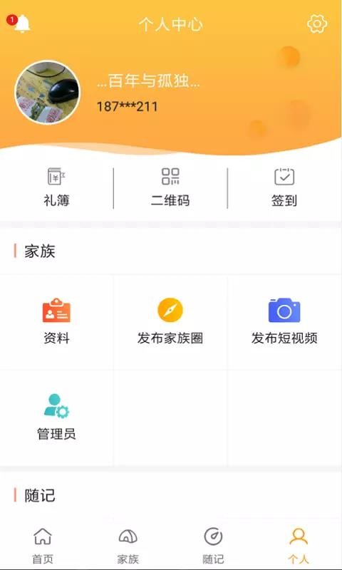 5、打开个人中心,了解家族资料,快速的发布家族圈和短视频