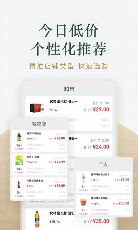 货比三价app是一款可以对比商品价格后进货的多功能手机软件;这里拥有众多的比价方式,可以让你更清晰的选择商品,能够让你的进货更加的实惠,使用非常的简单,信息真实有效;这里覆盖的商品种类齐全,一键就能查询相应的商品价格,可以随时的更换城市进行查看,推送众多的秒杀商品,及时参与秒杀让你的体验更加的有趣;这里还可以直接选择在线下单,能够快速的收到货物,让你的进货更加的节省时间;用户随时随地打开此应用软件就能即时的进行查询,操作非常的流畅,信息更快捷的推送,接收更有效。