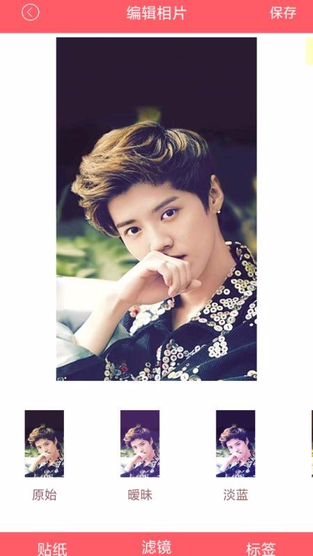 4、在照片编辑页面,用户可以选择贴纸、滤镜或标签进行添加和设置