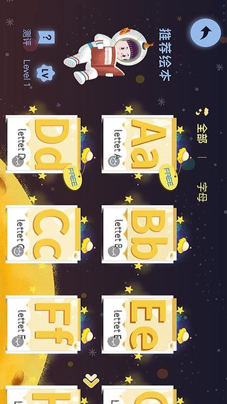 6、按照字母来查看绘本分类的情况,查看不同字母中的绘本,阅读学习英语;