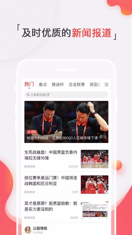 新浪体育app是一款内容丰富的体育赛事资讯软件,由新浪推出的,提供了体育新闻、热门赛事、赛事直播、点播服务等等,它不仅可以及时的获取新闻、快讯,以及依托海量数据的深度分析及评论,而且,还可以选择您关心的球队,与千万球迷互动,给你带来最真实的归属感,另外,新浪体育app还支持赛事提醒功能,有了它无论你的工作多忙,手头上的琐事再多,也不会错过每一场比赛,不留一丝丝遗憾,喜欢体育的小伙伴赶快下载试试看吧。